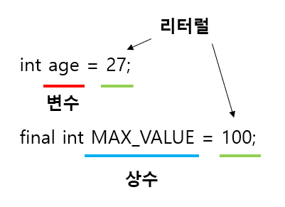 리ν°λ΄(Literal)μ΄λ κ·Έ μμ²΄λ‘ κ°μ μλ―Ένλ κ²μ΄λ€. μλ μμλ₯Ό ν΅ν΄ λ³μ, μμ, 리ν°λ΄μ μ΄ν΄νλλ‘ νμ.