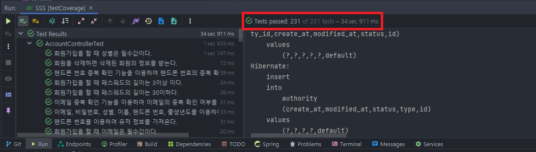 100%๋ฅผ ๋ฌ์ฑํ๊ธฐ ์ํด 231๊ฐ์ ํ ์คํธ ์ผ์ด์ค๋ฅผ ์์ฑํ์๋ค.